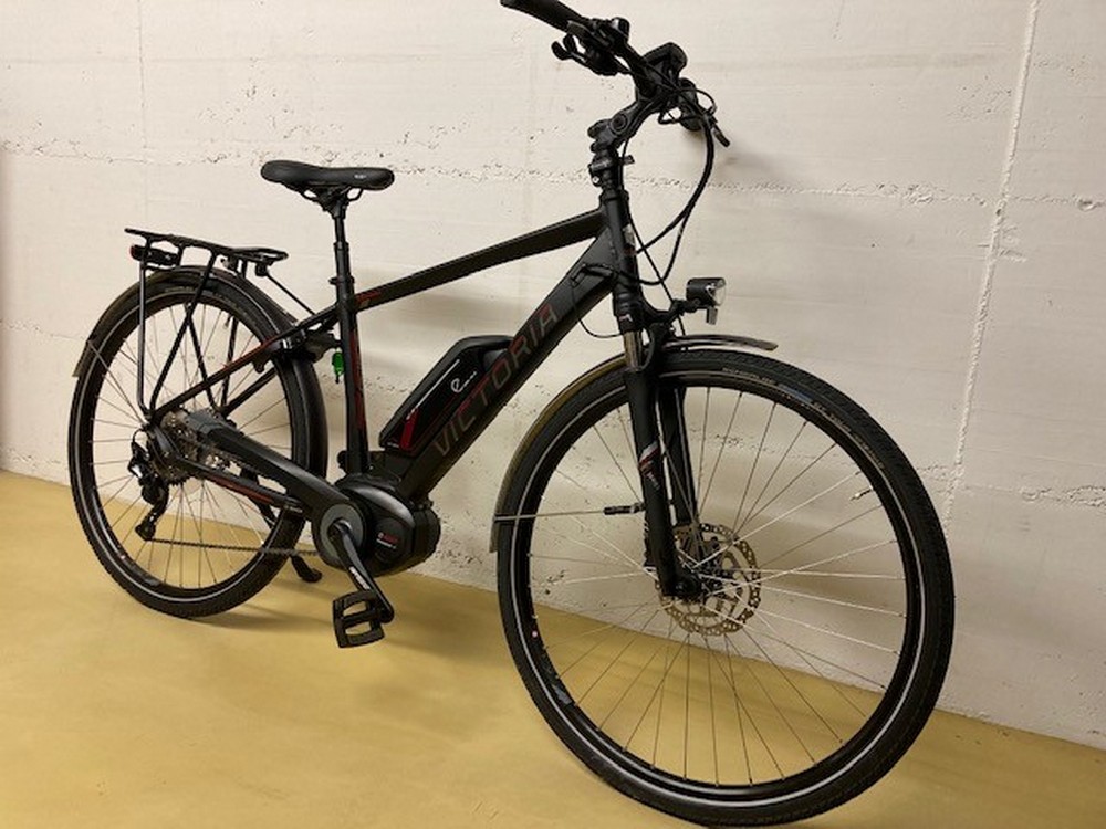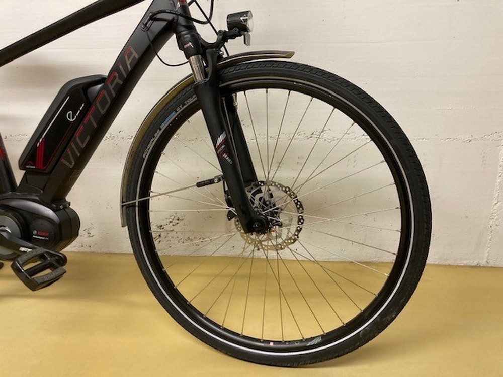 Der Mittelgebirgs-Champion von Victoria mit Bosch Performance Antrieb, höchster Reichweite (500 Wh Akku) und 10-Gang Shimano Deore Kettenschaltung. Dank des praktischen Speedlifters lässt sich die Lenkerposition werkzeuglos einfach und schnell individuell einstellen.Komplett mit Federgabel, Rahmenschloss, Gepäckträger, Beleuchtung und Schutzblechen bietet das eTrekking 8.8 ein tolles Gesamtpaket zu einem attraktiven Preis.Technische Daten