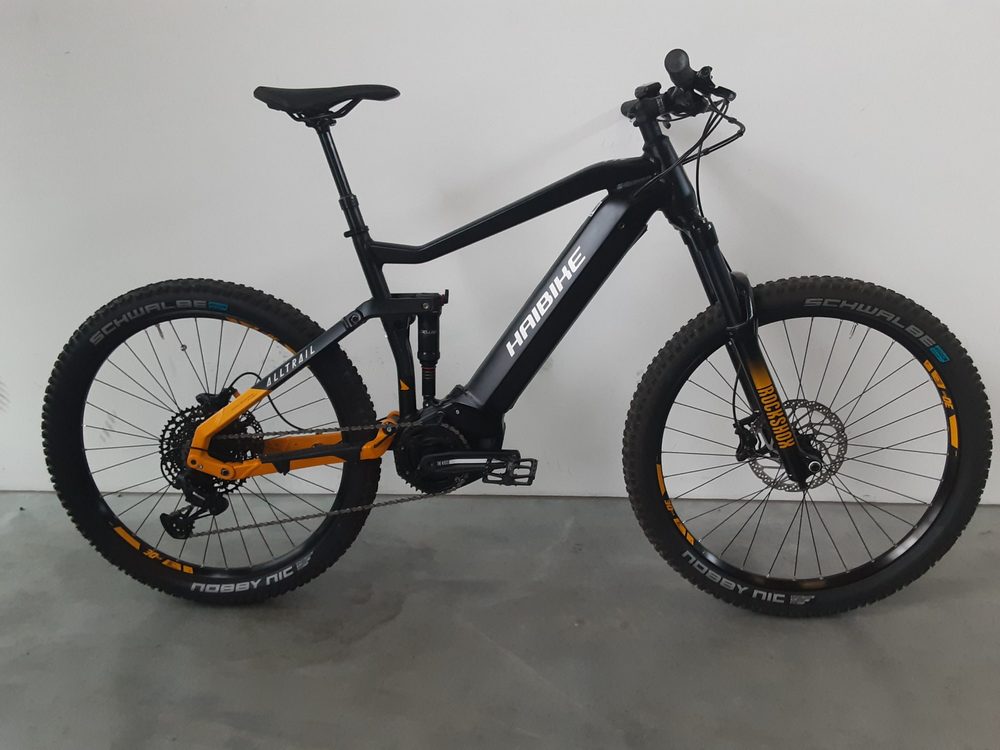 Gebrauchtrad- in sehr gutem Zustand, Leichte Gebrauchsspuren an Ständeraufnahme- 490 gefahrene Kilometer- Modelljahr 2021Rahmen: Haibike, FullSeven Yamaha i630, Aluminium 6061Motor: Yamaha, PW-ST System, 250 W, 70 Nm, 25 km/hAkku: InTube, 630 WhDisplay: Yamaha, Side Switch, 1.7" LCD, 7 functionenGabel: RockShox, 35 Silver, Luft, 150 mm Federweg, Aluschaft 1 1/8" - 1 1/2" tapered, 15 x 110mm Steckachse BoostDämpfer: RockShox, Deluxe Select Plus, Luft, Trunnion MountLenker: Haibike Components, TheBar ++, 780 mmVorbau: Haibike Components, TheStem ++, A-head, 31.8 mm, 7.0 degreesSattelstütze: Dropper-Post Remote 31.6, Aluminium, Teleskop, 31.6 mm Sattel: Selle Royal, VivoSchaltung: Sram, SX EagleBremse: Shimano, RT30Reifen: Schwalbe, Nobby Nic Evo Snakeskin, 65-584, 27.5 x 2.6 inchGewicht: 25,3 kgSofern nicht explizit ausgewiesen, wird das Rad ohne Zubehör ausgeliefert.